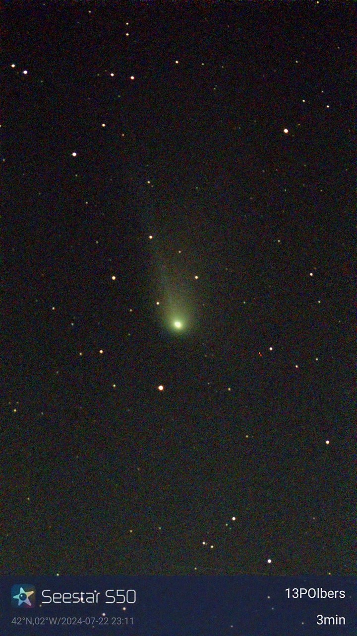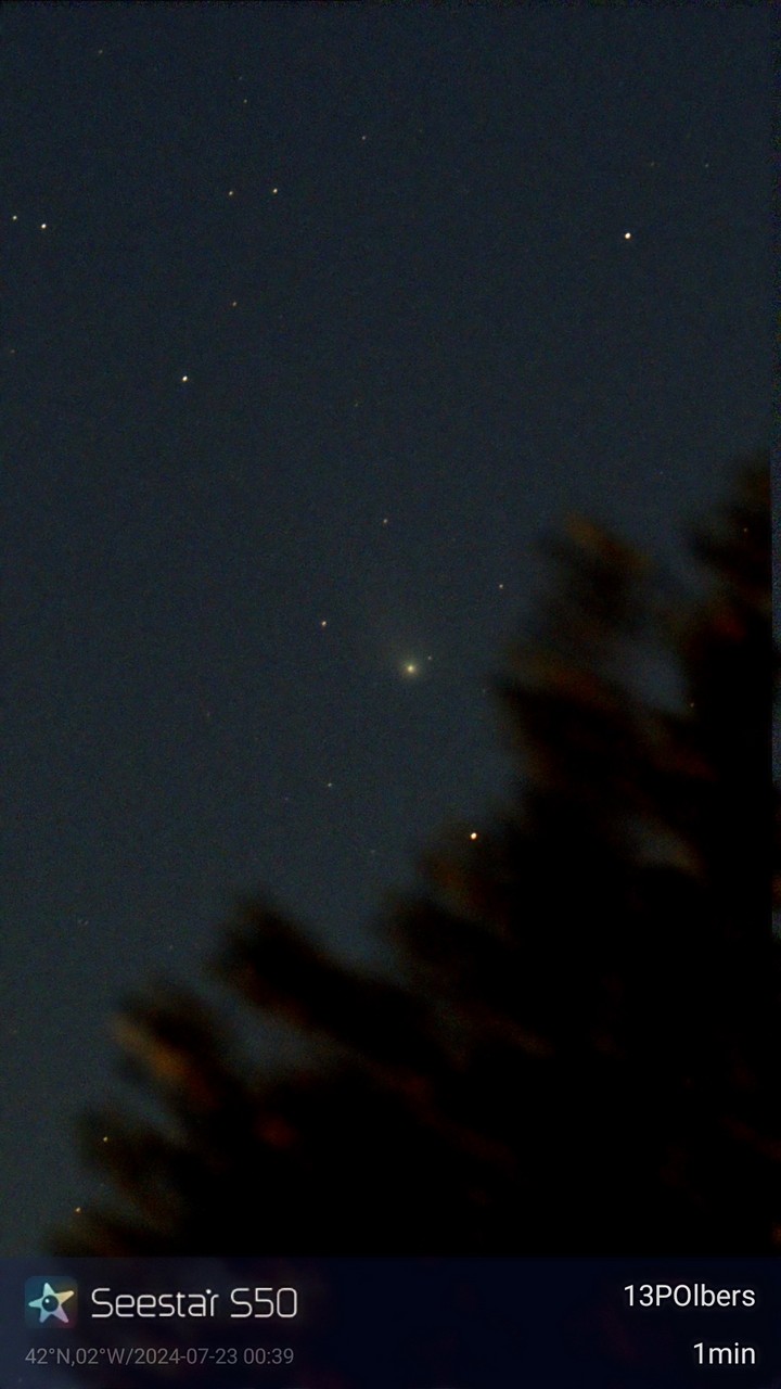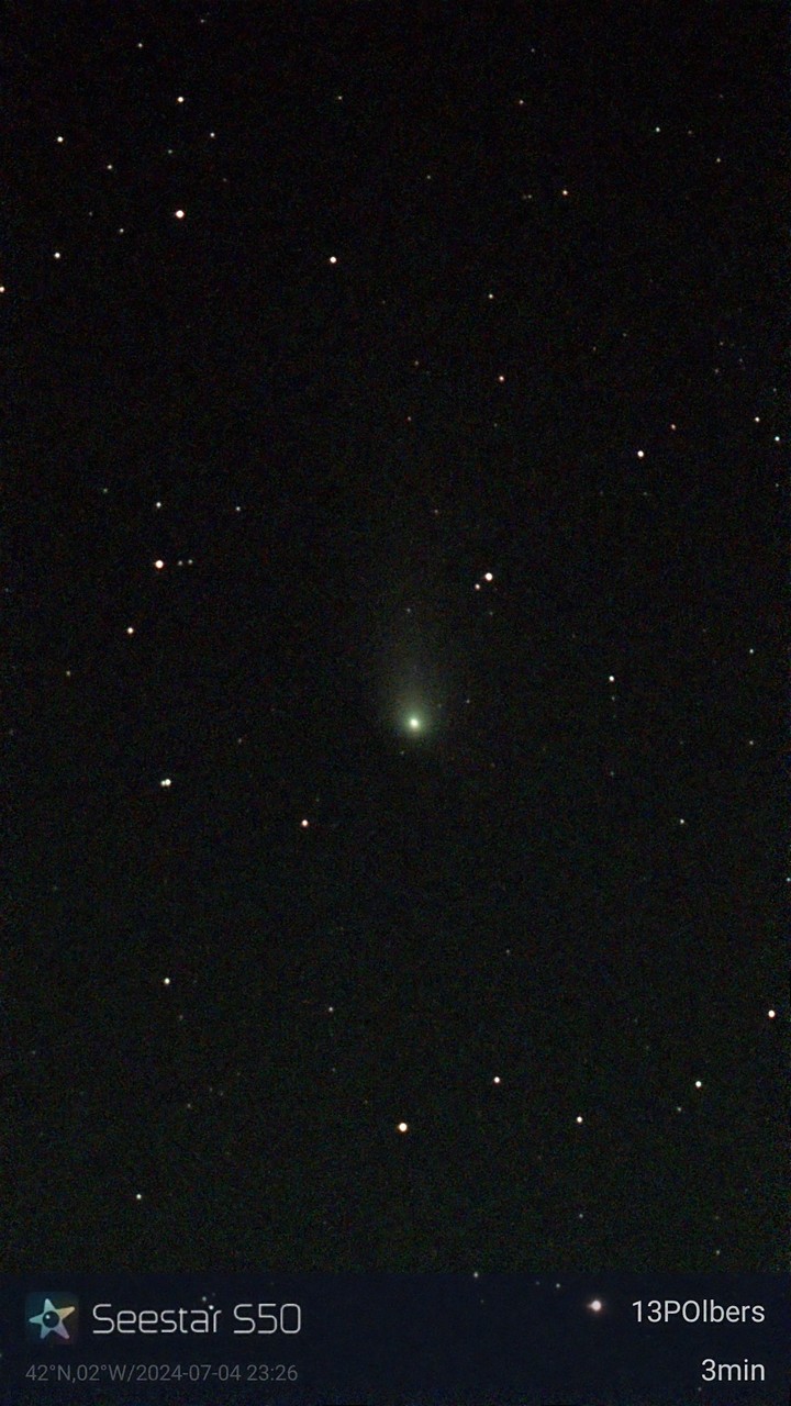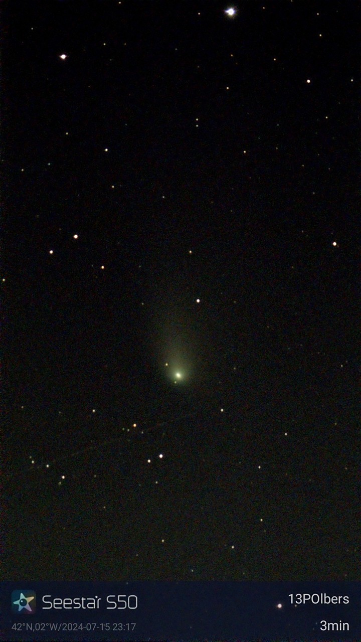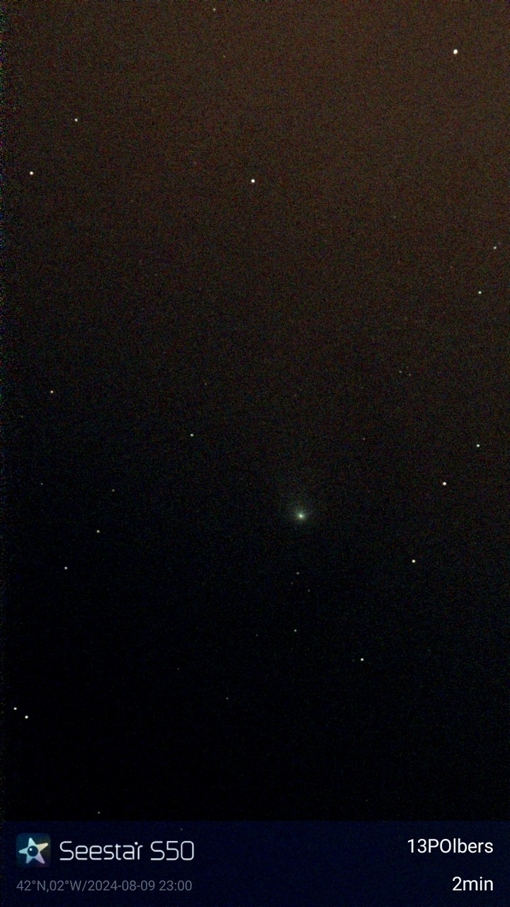 Noche semidespejada, e intento primero cometa 13P-Olbers, descubierto en 1815 por Heinrich Olbers