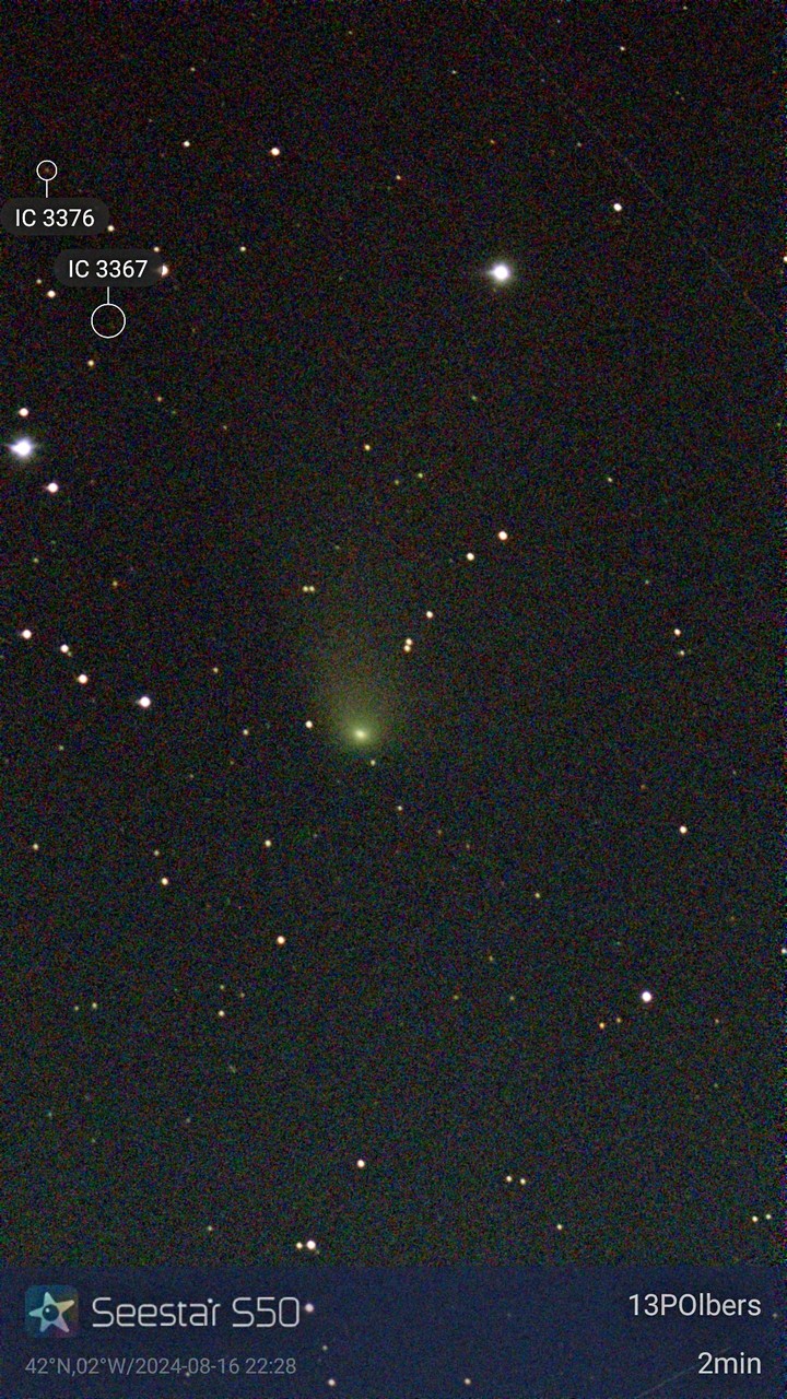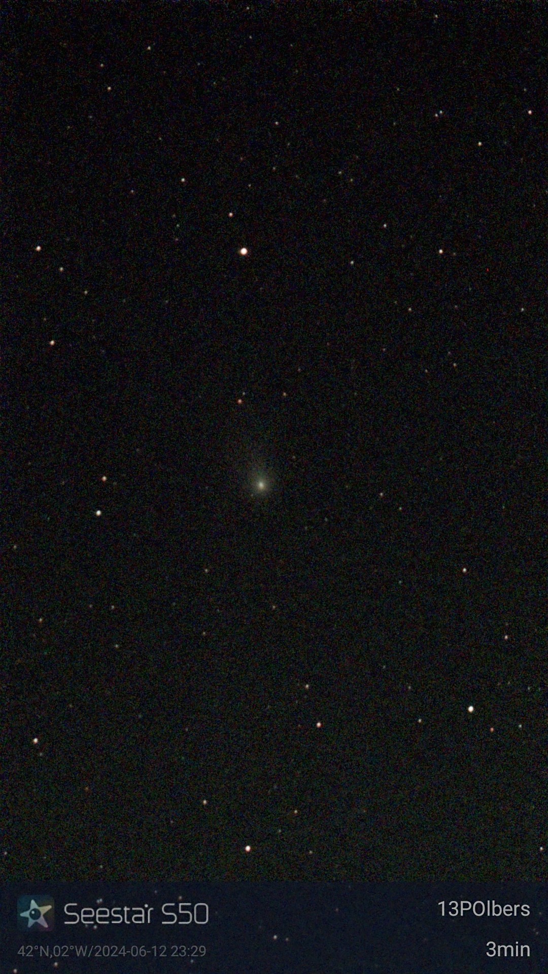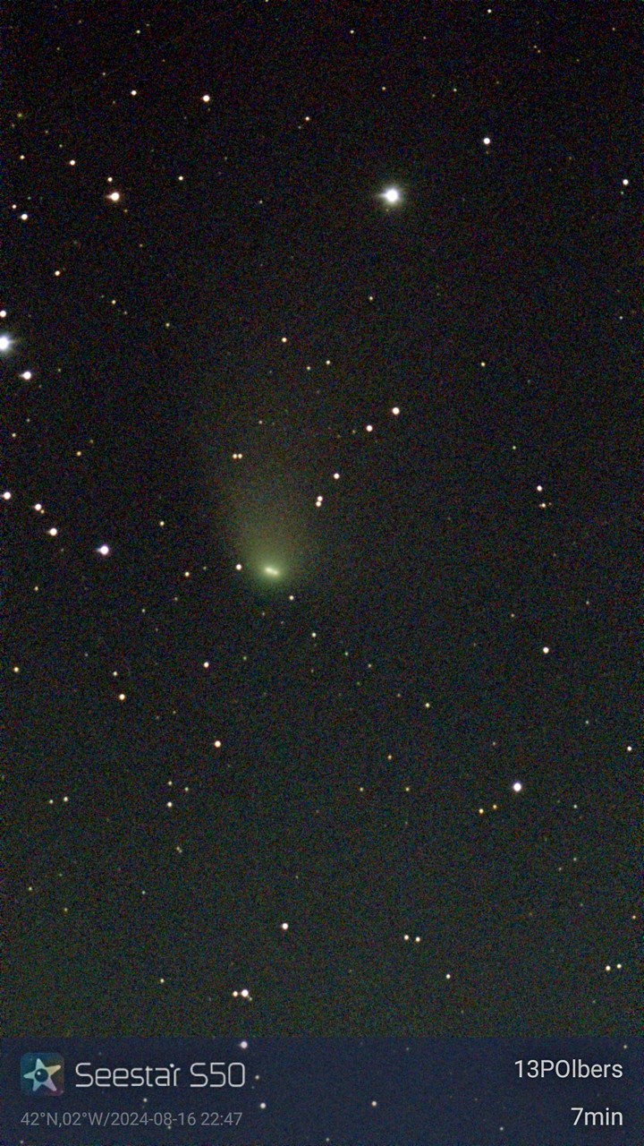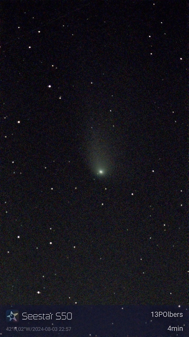 Noche semidespejada, e intento primero cometa 13P-Olbers, descubierto en 1815 por Heinrich Olbers