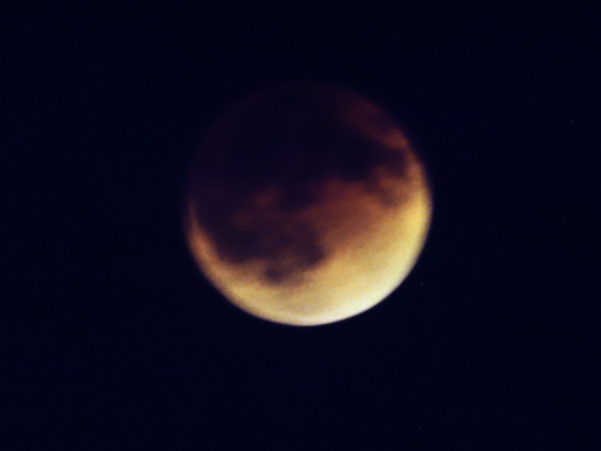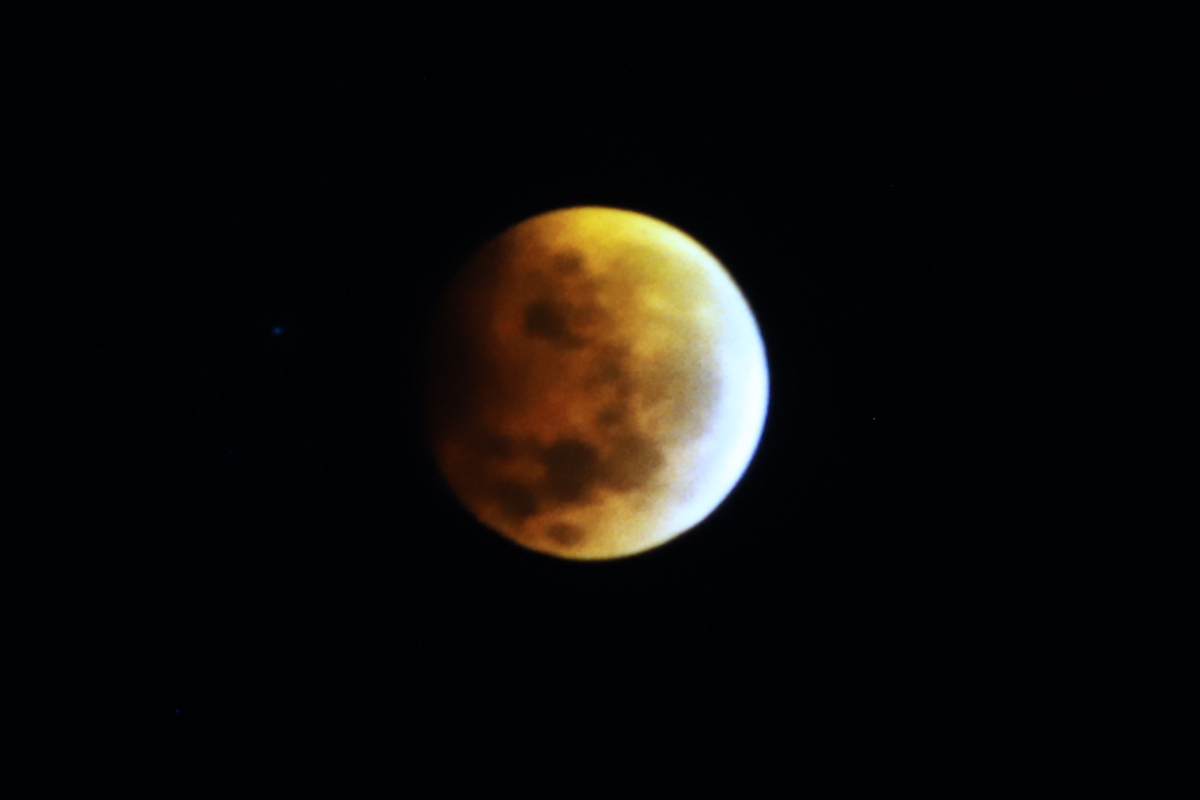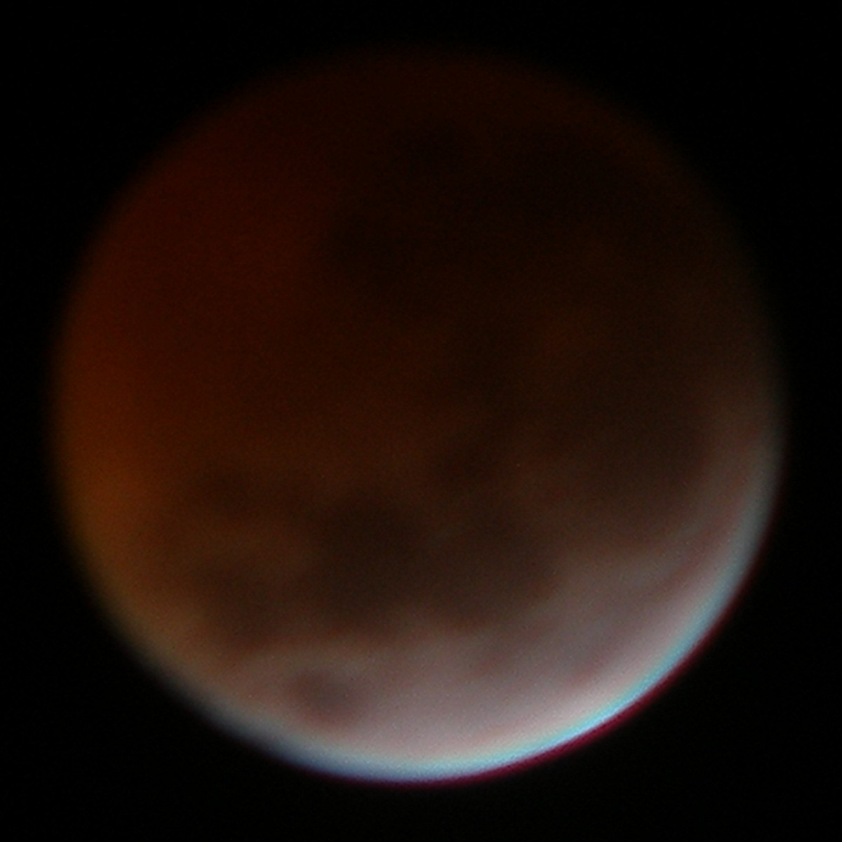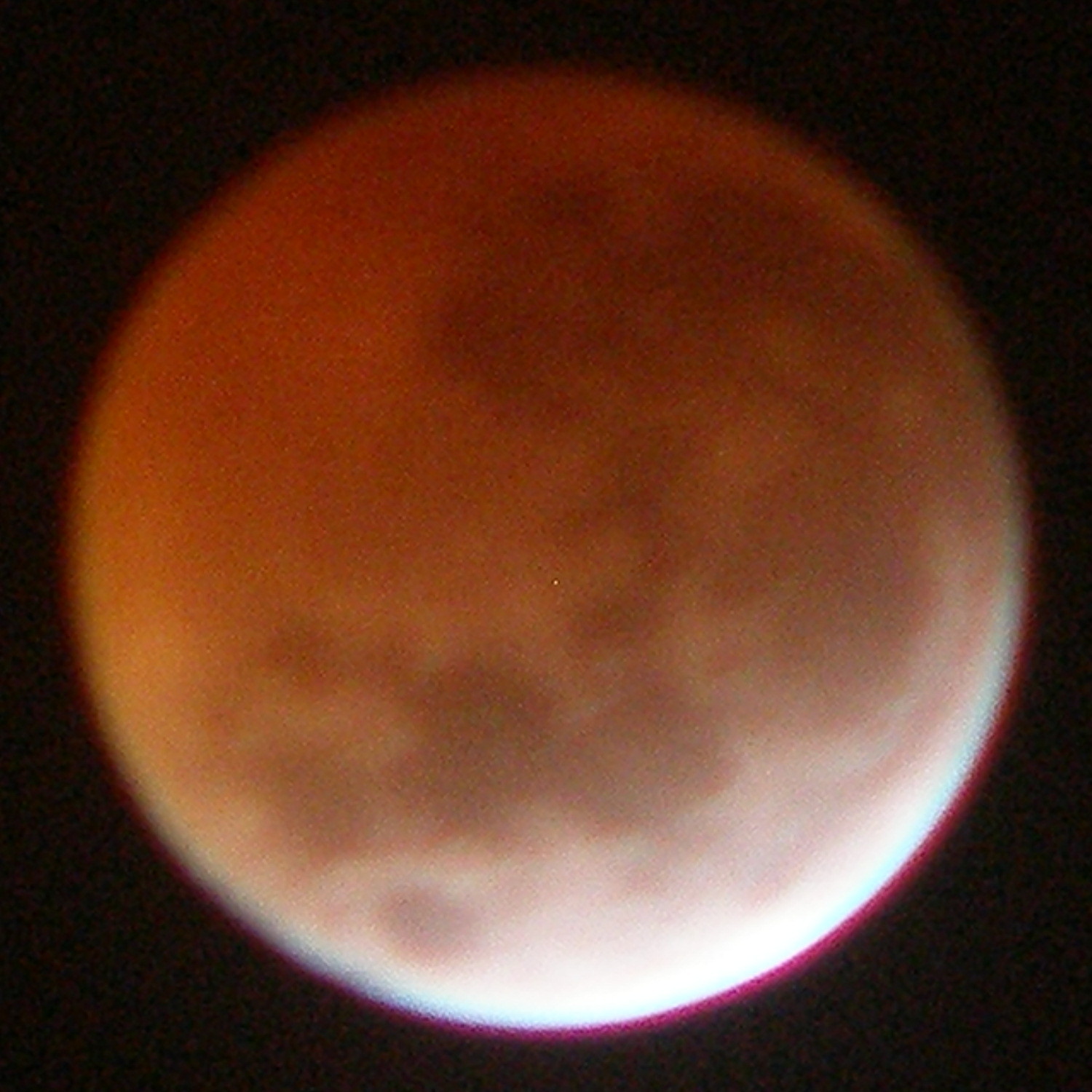 El máximo de la fase total es a las 04:12:42 UT con la Luna a unos 7º sobre el horizonte y ya en crepúsculo muy luminoso. Acaba a las 6:50:48 UT ya bajo el horizonte