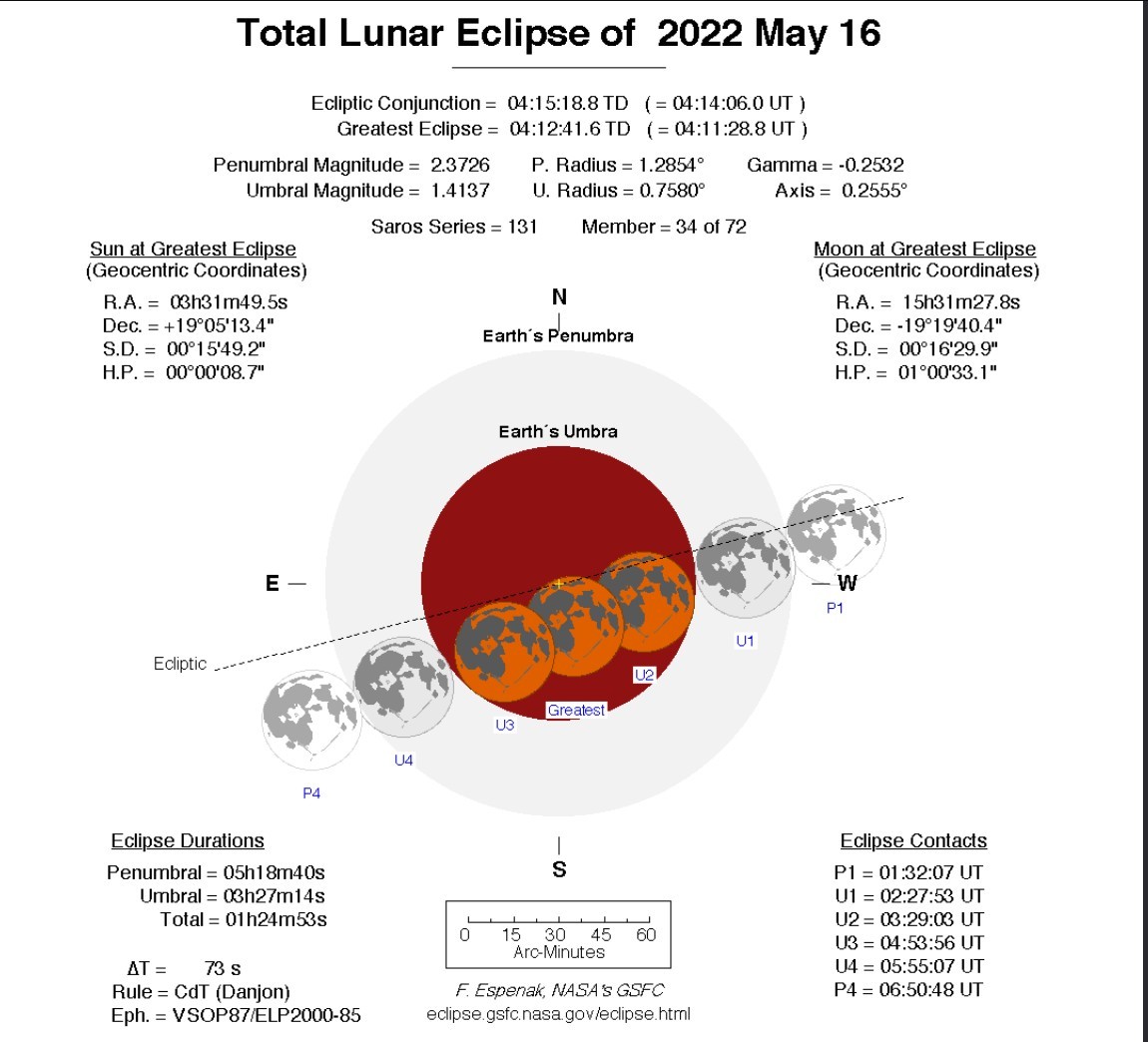Transmisión del eclipse total de Luna relizado el día 16 de mayo de 2022 a partir de la 1:32 UT.
