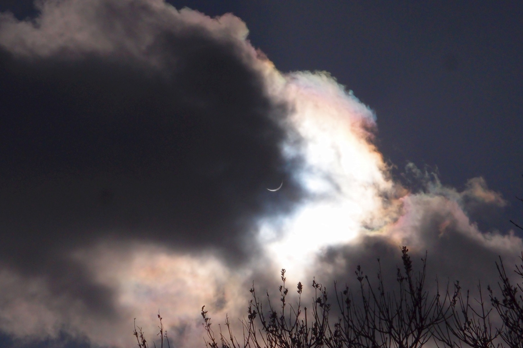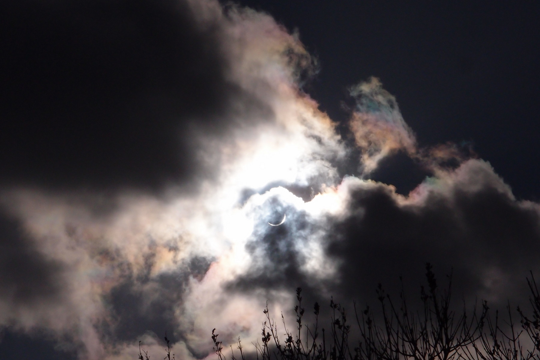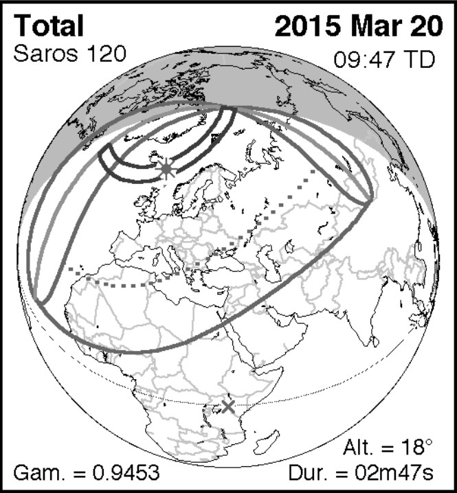 Desde Sommaroy. 20 de marzo de 2015 Este era un eclipse total, pero no estábamos en la línea de la centralidad. La totalidad pasaba por las Svalbard, pero desde un año antes estaban cubiertas las plazas para ver el eclipse total de sol. Desde nuestra ubicación el sol se cubrió más del 95% Las probabilidades de observarlo eran menores del 20% pero el tiempo se prestó para lo mejor. Se nubló practicamente al acabar el eclipse. Comparamos el mapa del eclipse y los momentos nublados Obtuvimos estas imágenes: |