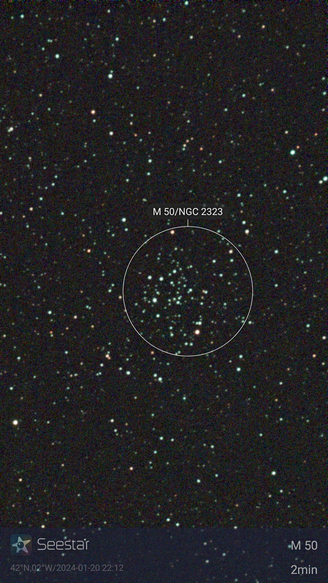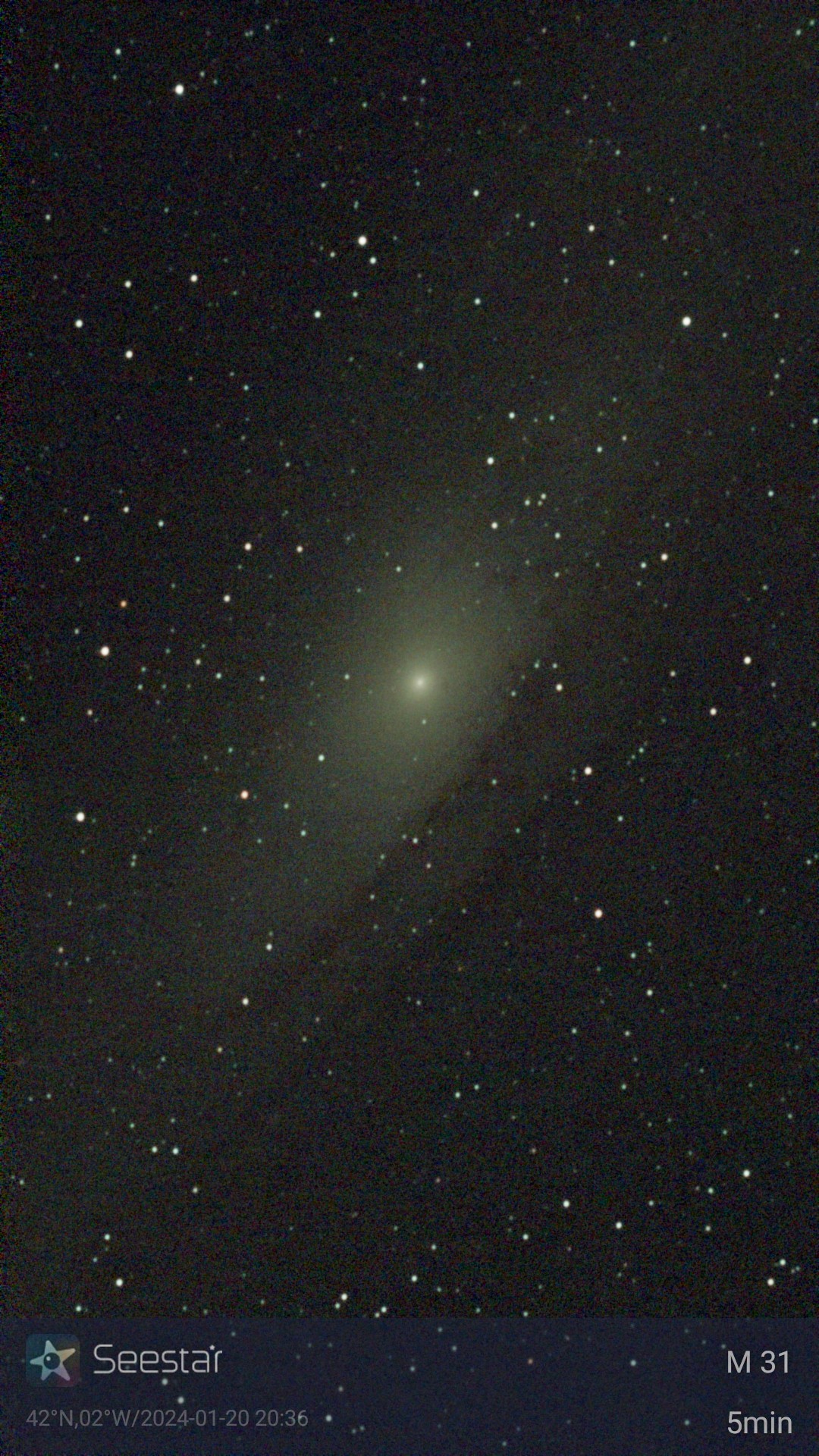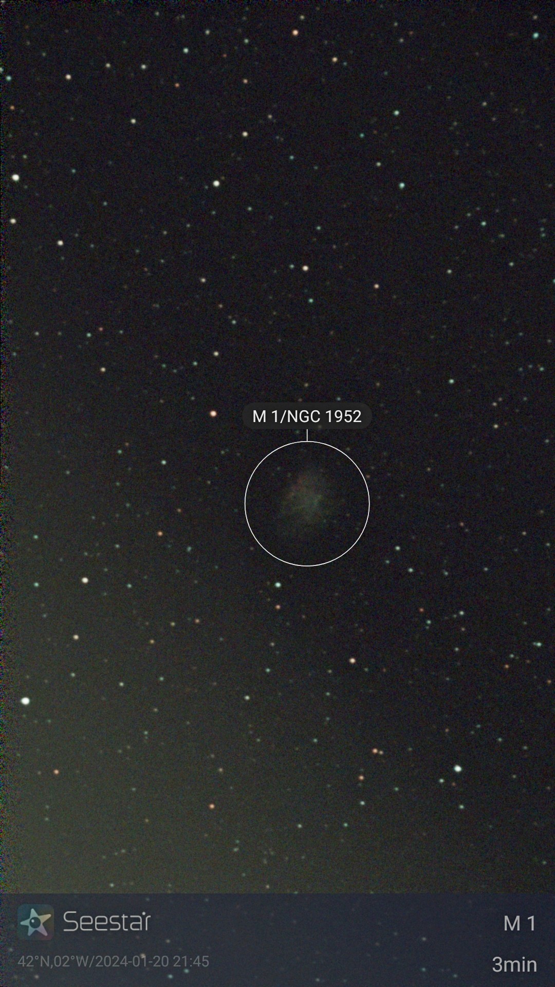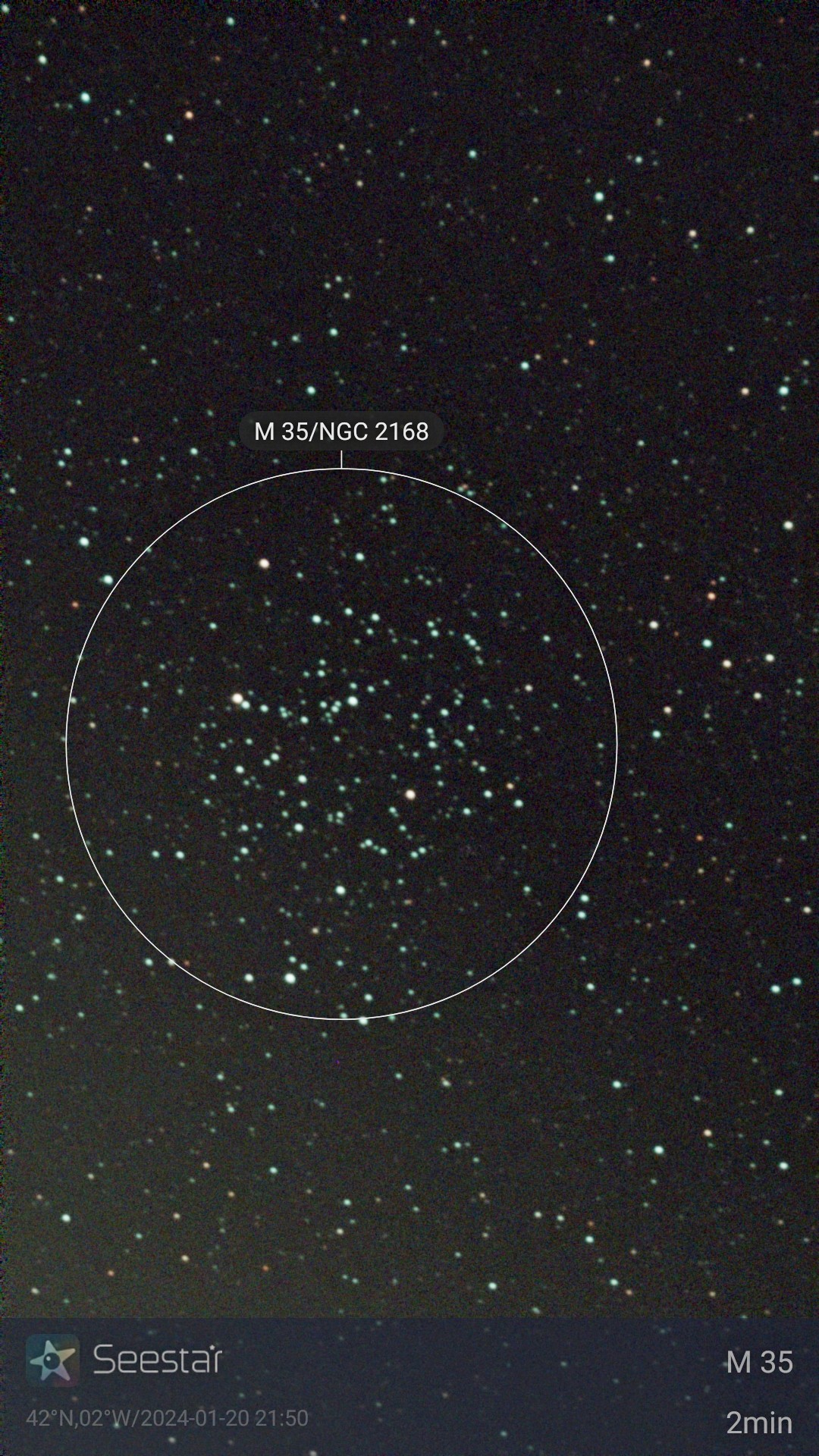 1ª Sesión de preparacion marathon Messier con el Seestar, del día 20 de enero de 2024 con una hermosa Luna creciente