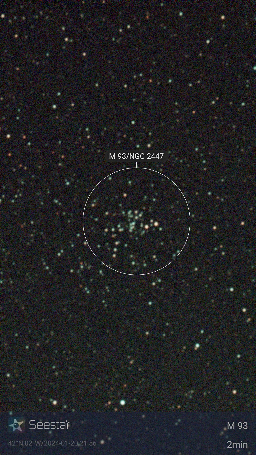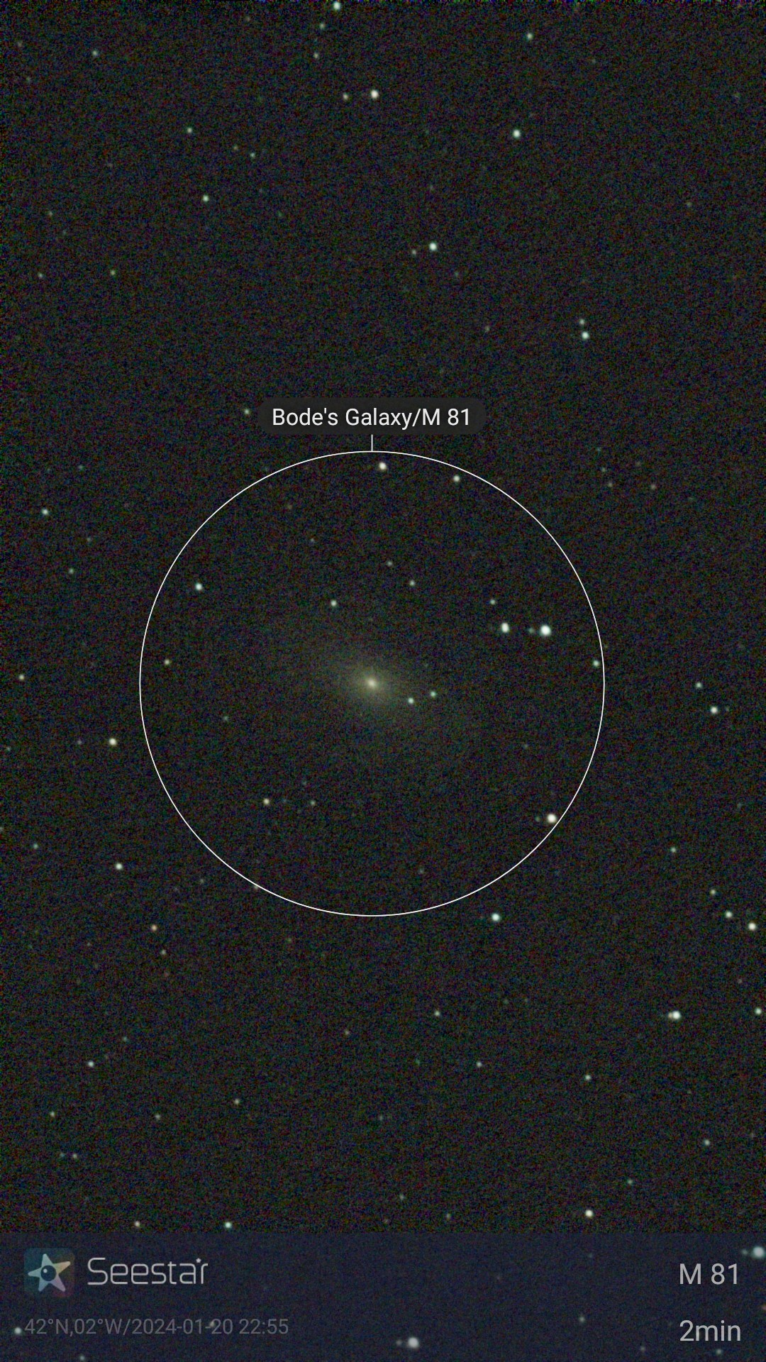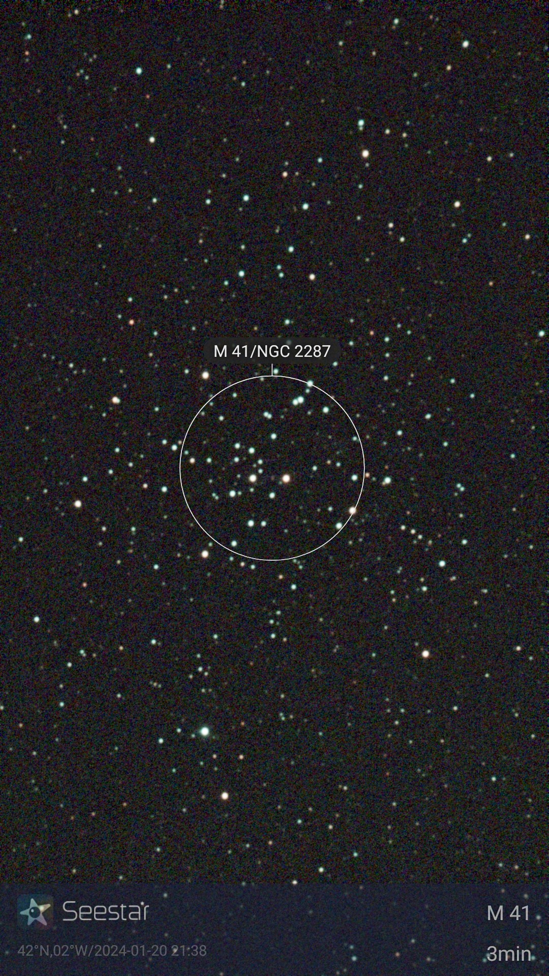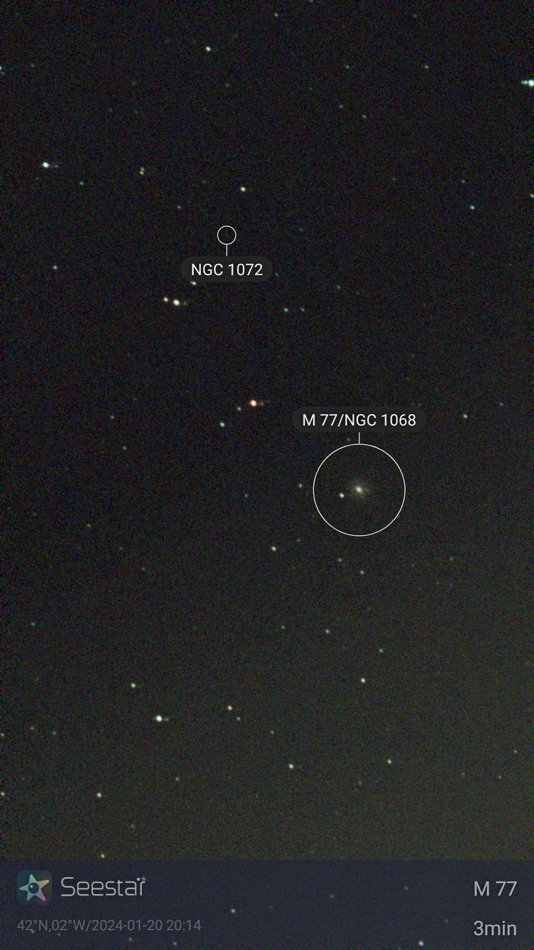 1ª Sesión de preparacion marathon Messier con el Seestar, del día 20 de enero de 2024 con una hermosa Luna creciente