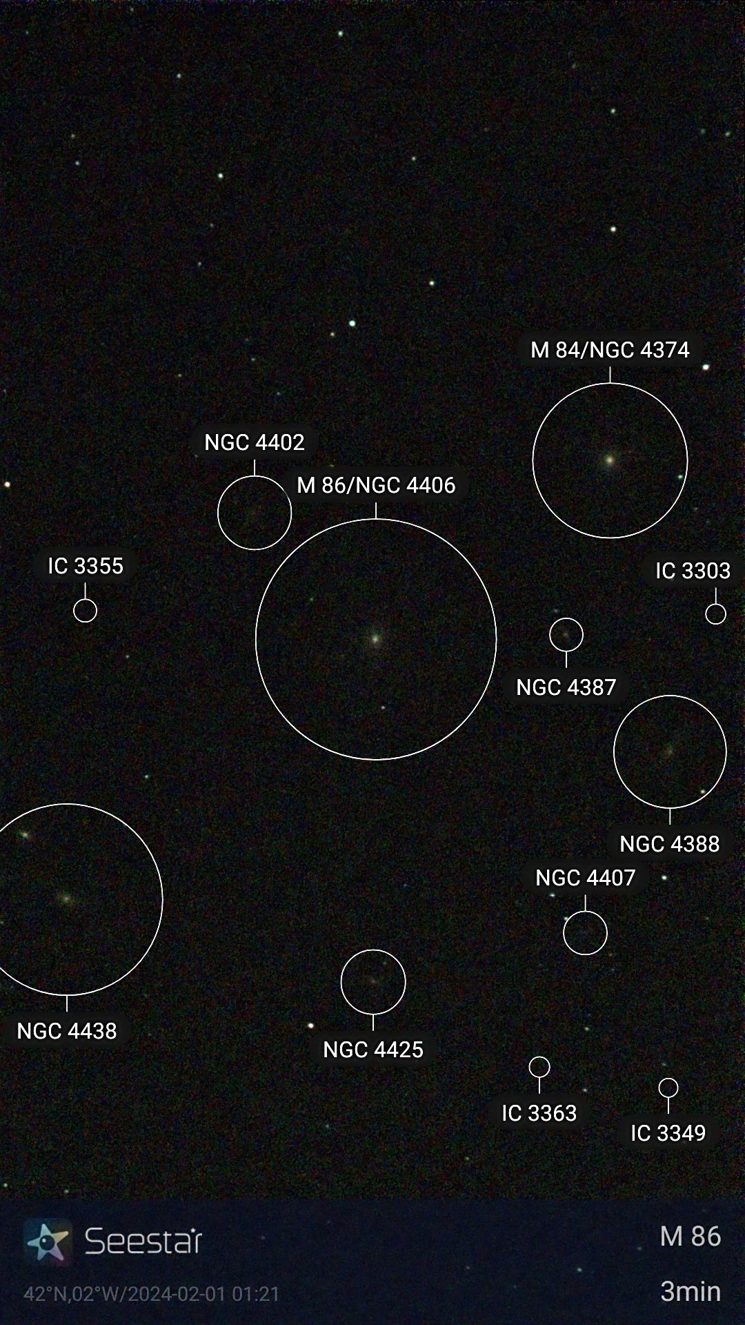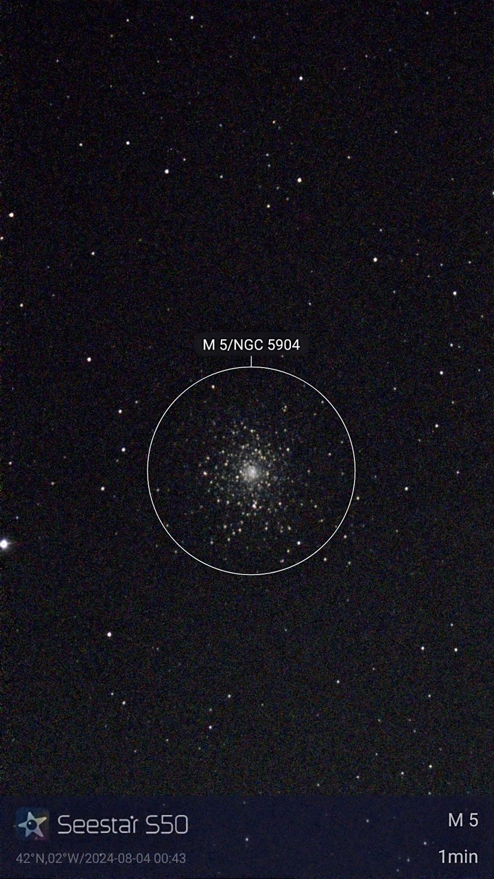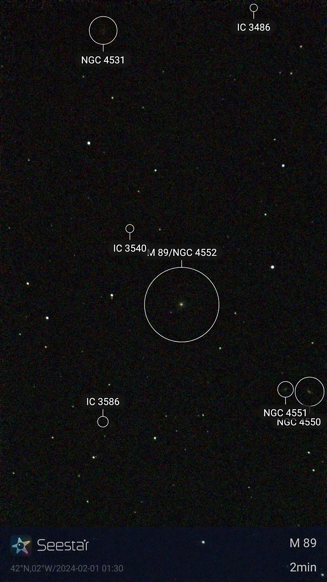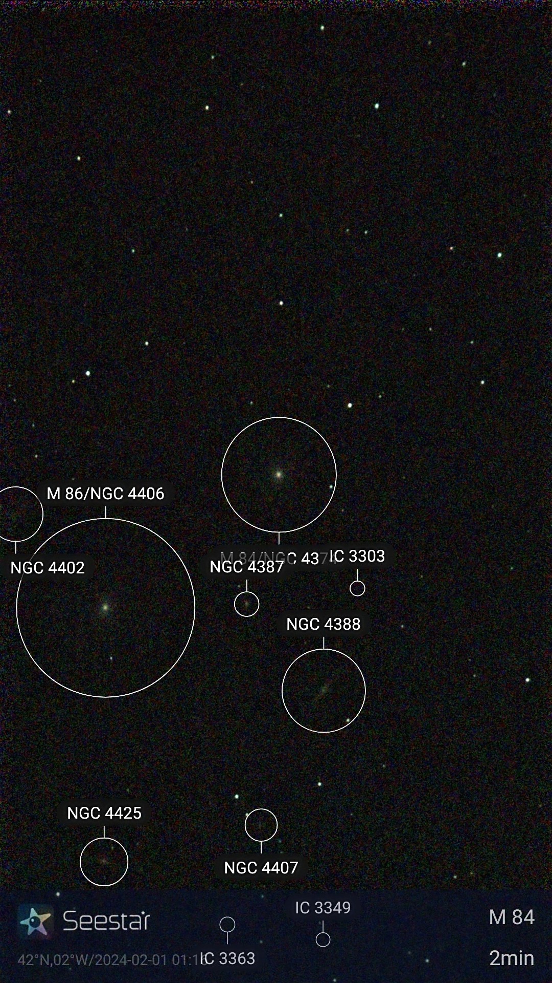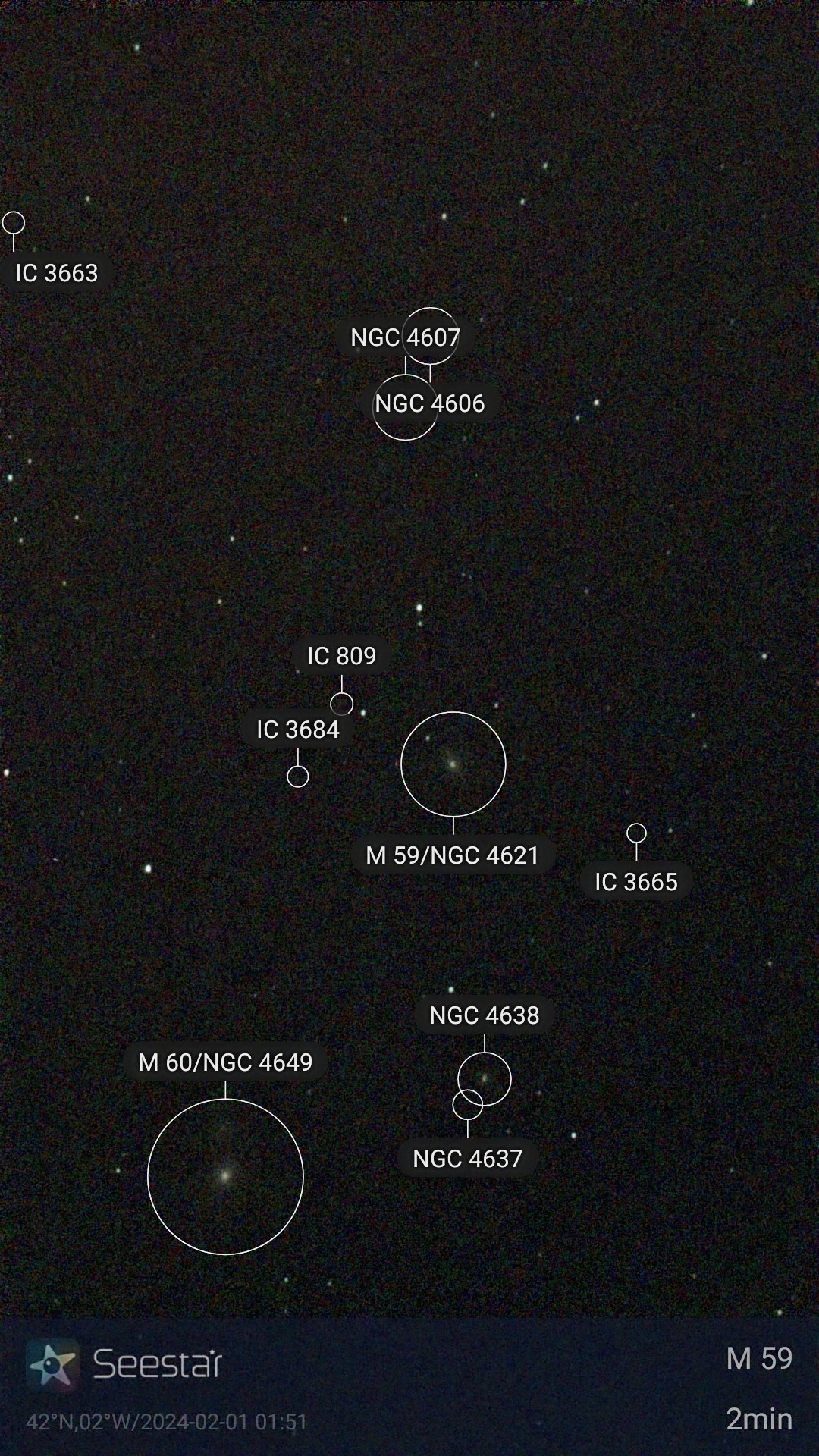 4ª Sesión marathon Messier y el Seestar la noche del 3al 4 de agosto de 2024 hasta que la humedad empaña todo