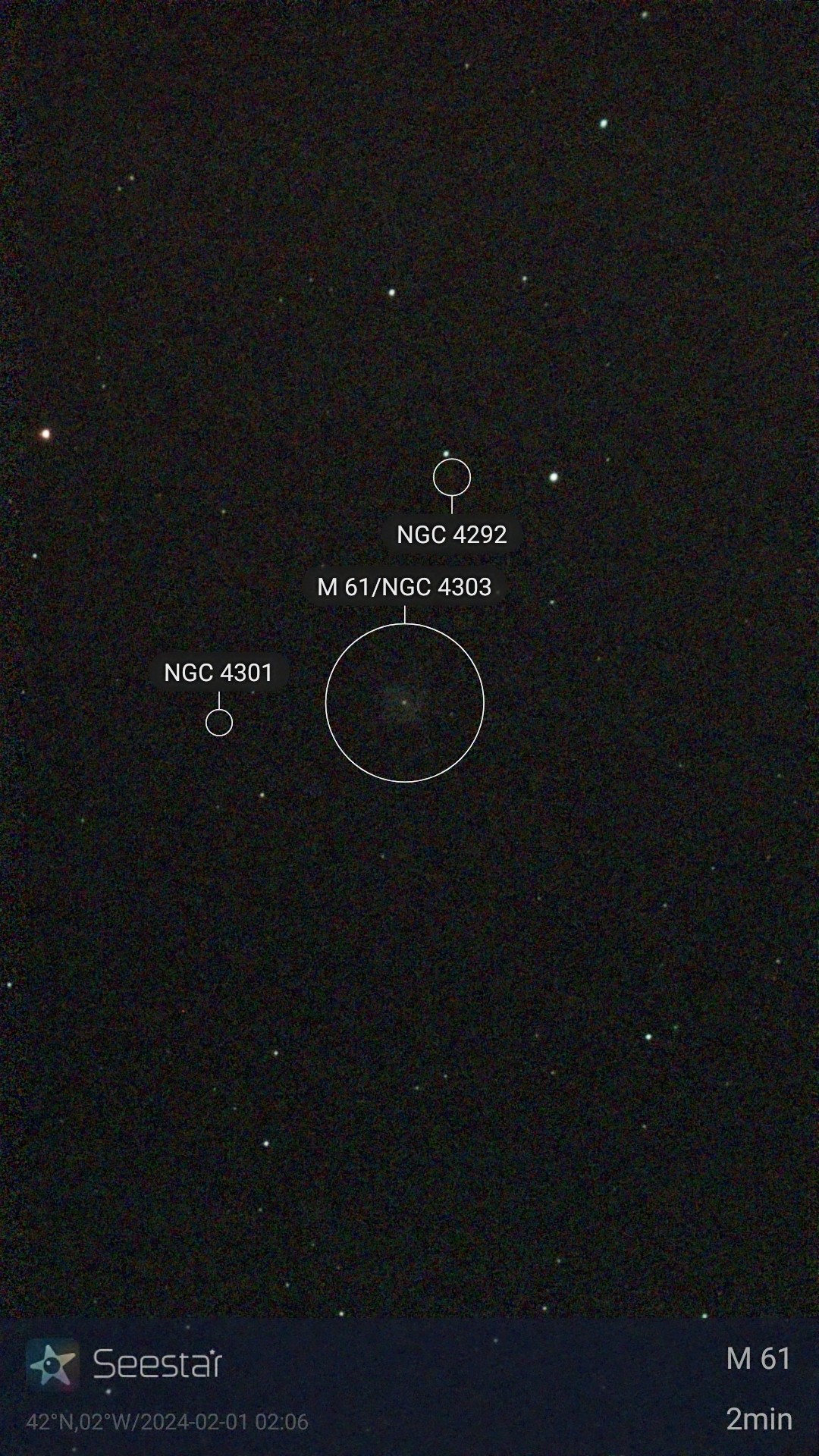 2ª Sesión del marathon Messier con Sestar la noche del 1 de febrero de 2024 con Luna en cuarto menguante